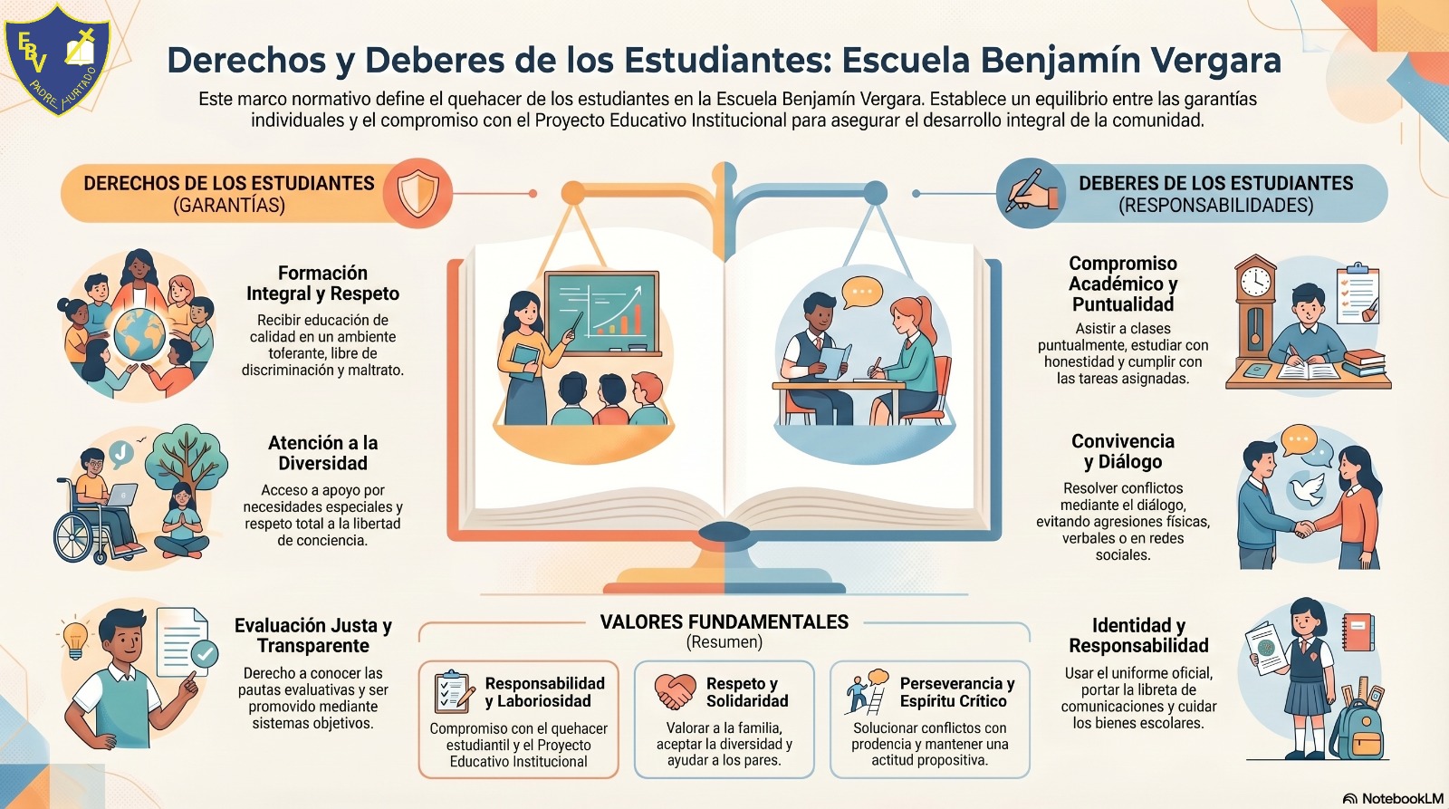 La Escuela Benjamín Vergara forma estudiantes de Prekínder a Octavo Básico con sólidos valores basados en Cristo e inspirados en San Francisco de Asís, fomentando una comunidad participativa y comprometida, con una mirada inclusiva e integradora, egresando estudiantes que cuenten con las herramientas necesarias para la continuidad de estudios a través de una formación académica de excelencia.